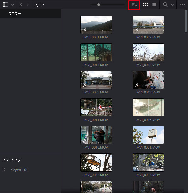 DaVinci Resolveのメディアプールに読込んだファイルをファイル名順に整理する方法を解説します。
