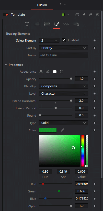 文字枠付きのテロップは装飾設定を4つ使います。