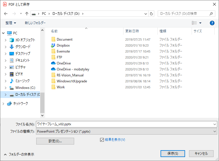 保存先を指定して「保存」をクリックします。