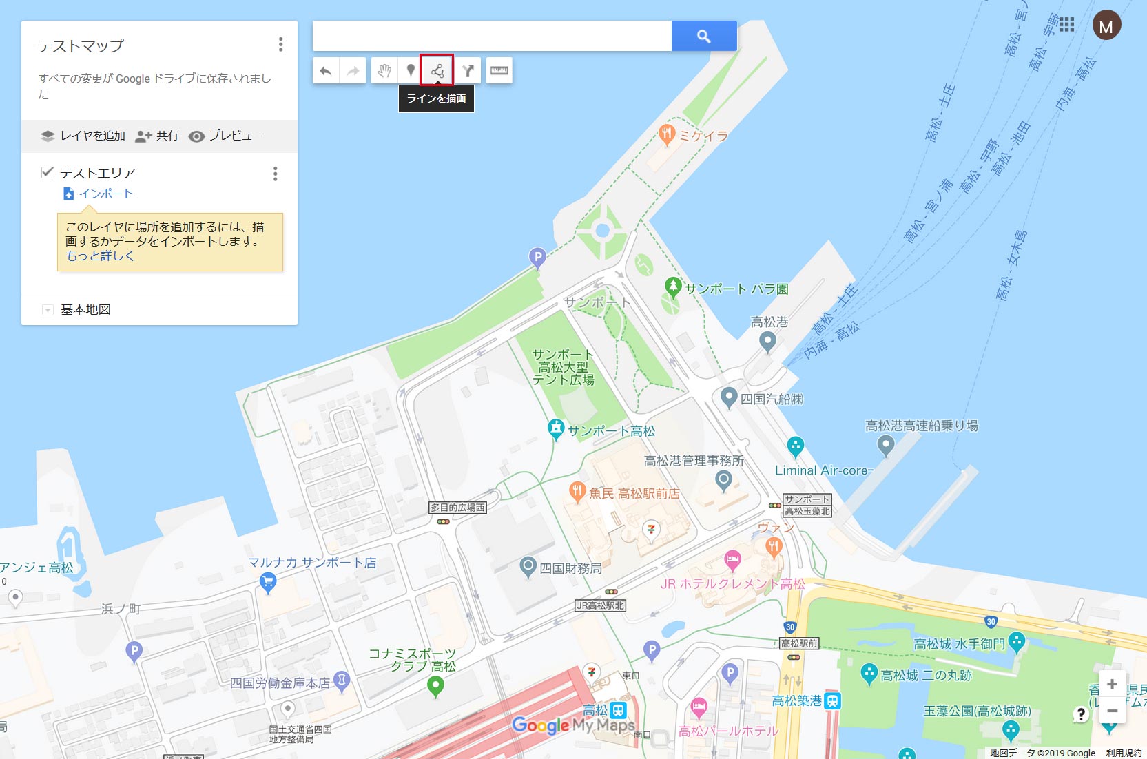 ページ上部のアイコン覧から「ライン描画」をクリック。