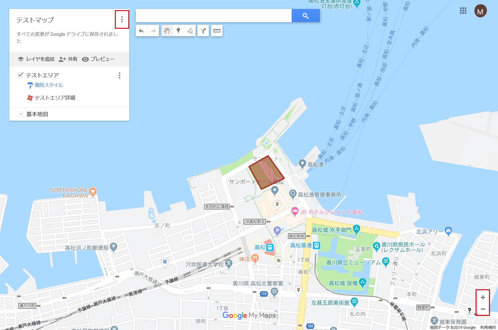 作成した地図を開いた時の地図のズーム状態を設定します。右下の「+」「-」を使って好みのズーム位置を設定して下さい。